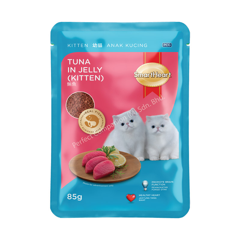 Indulge your little furball with SmartHeart Kitten Pouch – Tuna In Jelly, specially crafted for kittens under 1 year old.