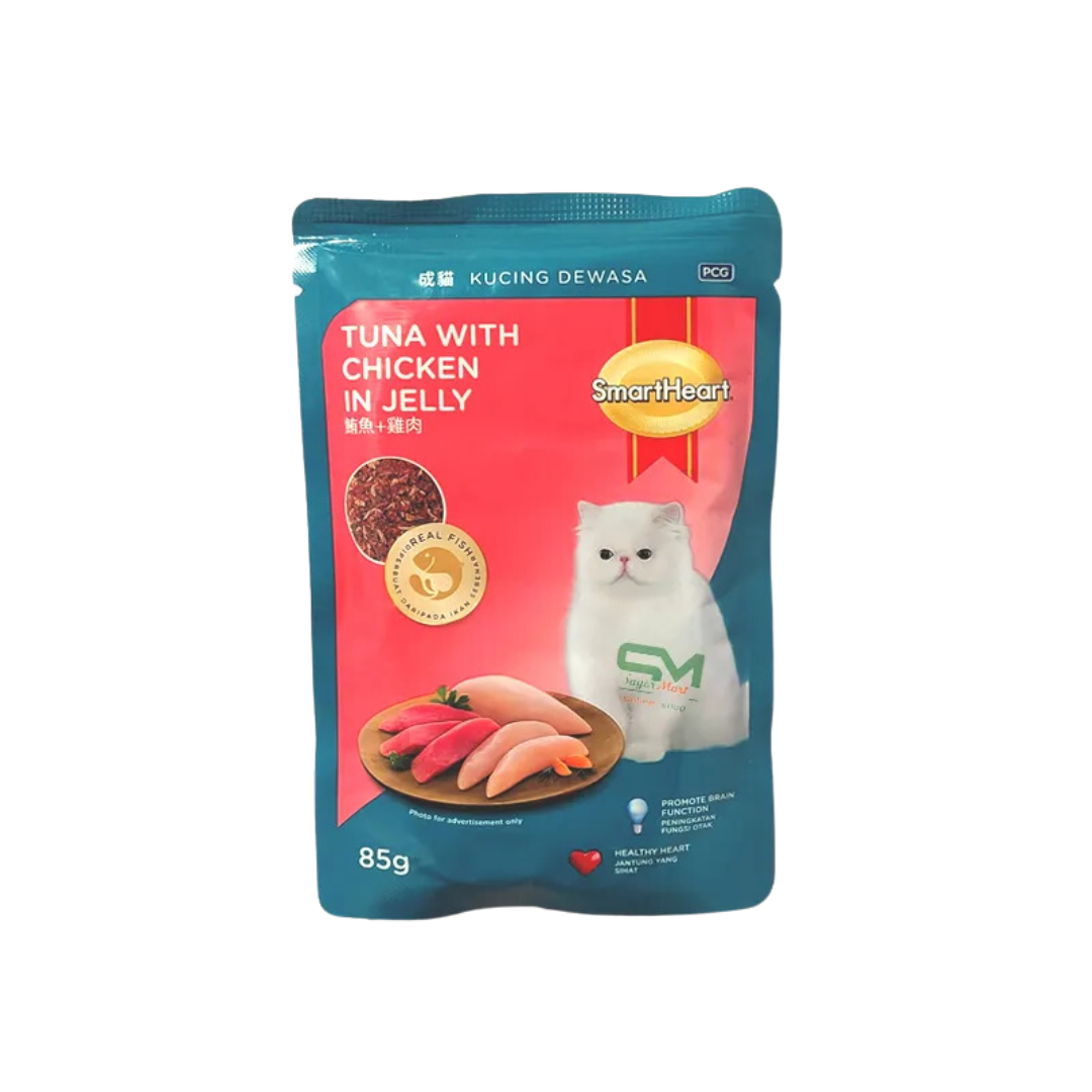 Smartheart Pouch Tuna With Chicken in Jelly (85g) is a nutritious and convenient meal option for adult cats. It gives them the essential nutrients to maintain a healthy and active lifestyle.